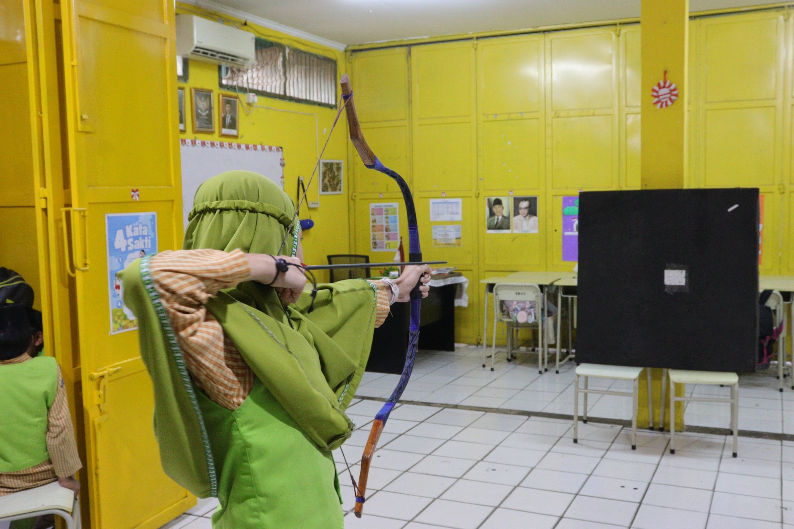 Ekskul panahan adalah kegiatan olahraga yang mengajarkan cara menggunakan busur dan anak panah untuk mengenai sasaran dengan tepat. Melalui latihan rutin, siswa belajar fokus, ketenangan, dan keterampilan teknik dasar panahan. Selain menyehatkan, panahan juga membentuk karakter yang disiplin dan percaya diri.